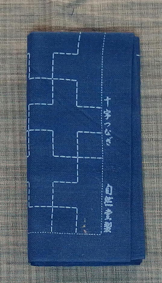 自家製ふきん 化学染 紺 長四角柄 十字つなぎ 1枚