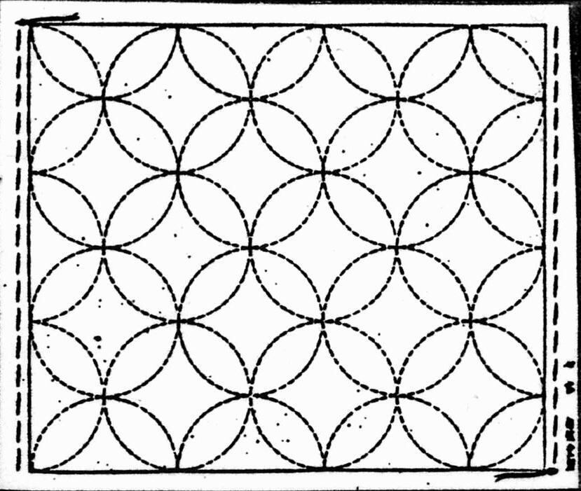 刺し子ふきん専用として織った布に、洗うと消える柄がプリントされています。