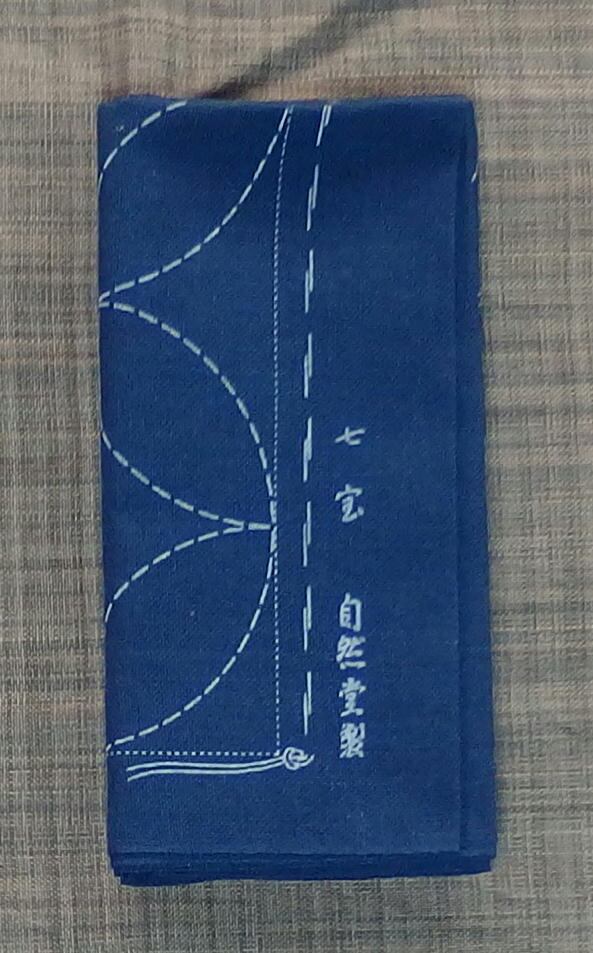 自家製ふきん 化学染 紺 長四角柄 七宝 1枚